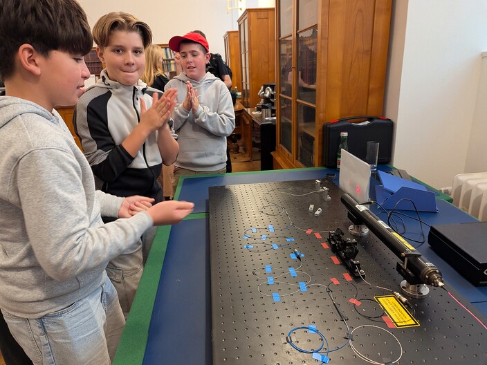 So gelangen es der Klasse 3b, der Klasse 8a und der Klasse 8b einen kleinen, aber feinen Einblick in die Welt der Quanten zu erhalten.