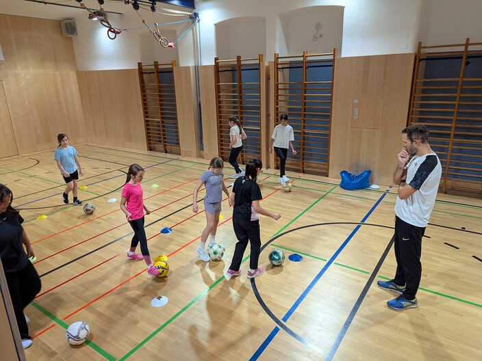 Die Mädchen der Klasse 2a und Klasse 2b nehmen am Projekt „Fuß-Ballerinas“ teil – einem ASVÖ-Fußballprogramm speziell für Mädchen zwischen 10 und 14 Jahren. Zwei ausgebildete Trainer besuchen die Klasse zwölf Doppelstunden lang, um ihnen Technik, Teamgeist und Freude an Bewegung zu vermitteln.