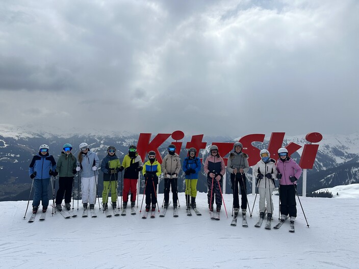 Vom Sonntag, 22. bis Freitag, 27. März 2026 verbrachten Prof.in Frater, Prof.in Wurmsdobler, Prof. Müller-Angerer, Prof. Satra, Prof. Schaffer, Prof. Stolzlechner und Prof. Witschnig mit der Klasse 3a, Klasse 3b und Klasse 3c einen unvergesslichen Schulskikurs in Kitzbühel (Tirol). Drei Tage lang verwöhnten strahlender Sonnenschein und ein traumhaftes Alpenpanorama — perfekte Bedingungen zum Üben und Spaßhaben. Bei diesem Schönwetter haben es die Flitzer-Gruppen sogar via der 3S von Kitzbühel in das Skigebiet Jochberg geschafft und dort den Zweitausender bezwungen. Fast alle Gruppen sind die berühmte Streif-Abfahrt gefahren und haben die Hausbergkante und die Mausefalle erlebt.