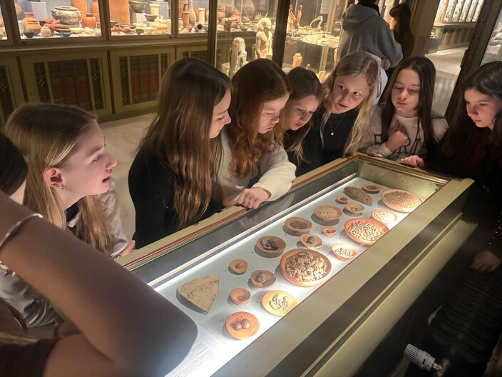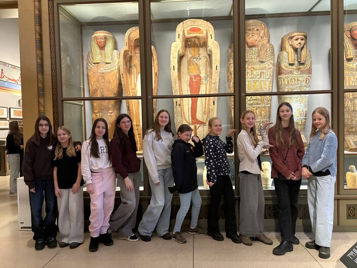 Unser Ausflug am 22.Jänner 2026 mit Prof.in Planer und Prof.in Leban führte uns in das Kunsthistorische Museum, und zwar genauer gesagt in die faszinierende Welt des Alten Ägypten. Geteilt in zwei Kleingruppen wurden wir von zwei Fachleuten in die verschiedenen Räume begleitet – diese waren voll mit Statuen, Schaukästen und Sarkophagen. Besonders staunten wir über eine Jahrtausende alte Mumie in einem offenen Holzsarg. Sie war durch den Vorgang der Mumifizierung mitsamt der Herausnahme der Organe immer noch so gut erhalten geblieben. Für die entnommenen Organe gab es eigene Gefäße in der Gestalt von Tierköpfen.